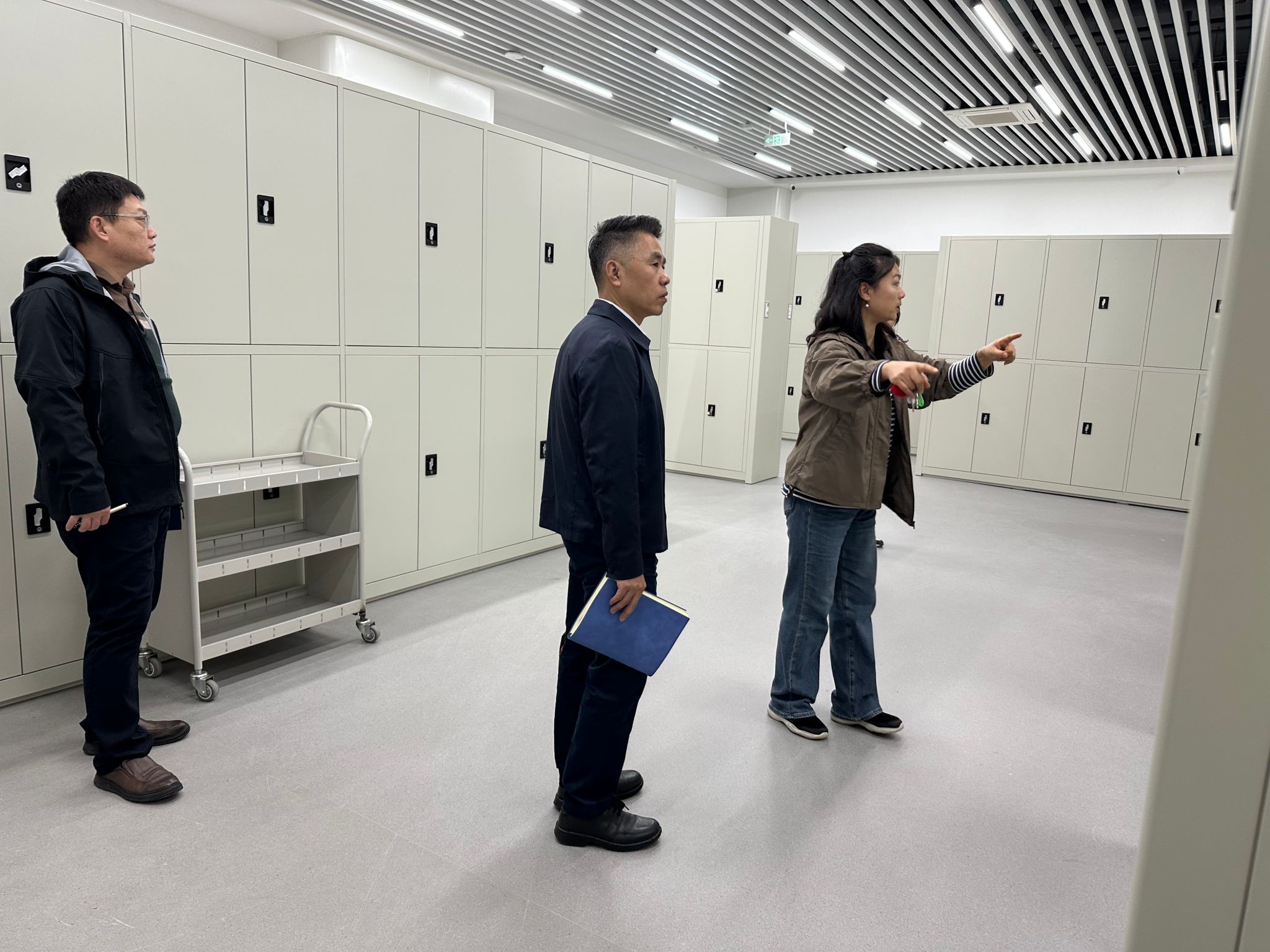 10月13日,学校党委(校长)办公室(档案馆)主任张军、副主任王鹏一行赴档案馆进行实地调研,深入了解档案馆日常运行、馆藏资源建设及服务利用等情况,并就进一步做好新时代学校数字化档案工作听取意见建议。