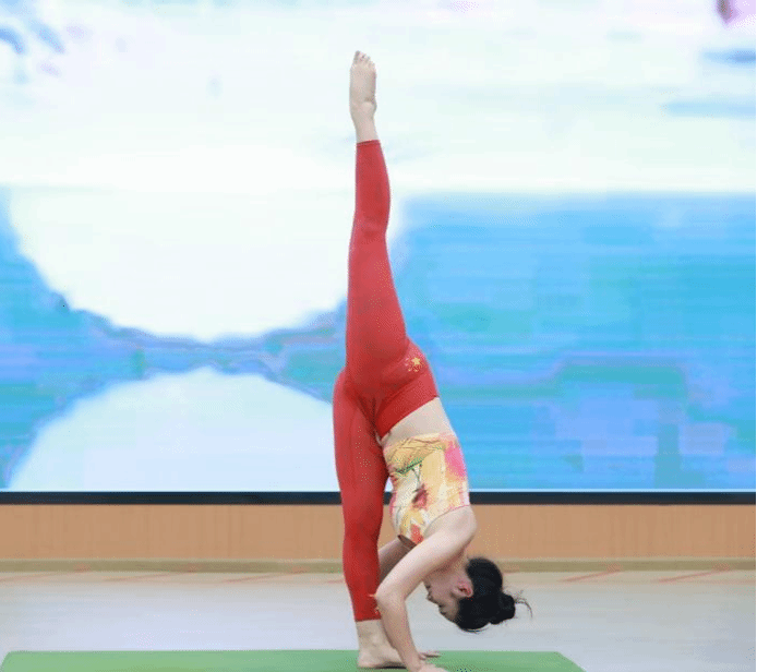 赛场上,伴随着舒缓悠扬的音乐,选手们以沉稳的呼吸、流畅的体式,完美诠释了“内修外练、以静制动”的瑜伽理念。从舒展的桥式到坚定的战士式,从精准的倒立到柔美的扭转,每一个动作都展现出力与美的交融,赢得了现场观众的阵阵掌声。即便在挑战高难度体式时偶有波动,选手们也能通过调整呼吸迅速恢复状态,展现了出色的心理素质和专业功底。