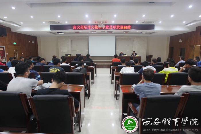 见面会后,奥雷利奥•德•劳伦蒂斯先生为我院师生做了“意大利足球文化和中意足球发展前瞻”主题报告。奥雷利奥•德•劳伦蒂斯先生讲到,意大利整个国家包括所有国民非常喜爱和重视足球,足球是一个重要的产业;中国发展足球目前有着其他国家无可比拟的优势,有政府支持和政策扶持以及庞大的足球市场和快速增长的足球人口,未来中国成为世界足球强国的目标一定能实现;中国足球应当多向意大利包括世界其他足球强国学习,让球迷享受足球、让球迷开心、让年轻人多花时间到足球上来,多思考关于足球的一切。奥雷利奥•德•劳伦蒂斯先生愿意在中国建立最大的足球青训基地,也很中意西安,希望后期能与西安体育学院加强交流合作,为提高中国足球水平和培养大量的高水平足球人才贡献力量。
