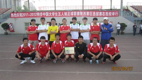 本网讯 4月24—28日,2012年中国大学生五人制足球联赛陕西赛区比赛在西安理工大学举行,全省共20个院校参加角逐。我院五人制足球队经过顽强拼搏夺取冠军,这也是我院五人制足球队连续第五年获此殊荣。他们将于5月3日开赴成都代表陕西参加中国大学生五人制足球联赛总决赛。