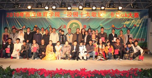 为营造良好的校园文化氛围,由团委、学生会主办,健康科学系团总支、学生分会承办的西安体育学院2010年“校园十大歌星”卡拉OK大赛决赛于10月30日晚在大学生活动中心圆满落幕。学工部部长张朝阳、副部长缑荣涛、梁咏梅以及各系党总支书记和年级主任等应邀参加了本次活动。