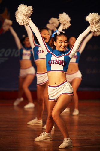 此次比赛我院派出裁判员等工作人员共30余人。比赛期间,艺术系师生还为大赛奉献了精彩的啦啦操、健身健美及健身搏击操等表演。