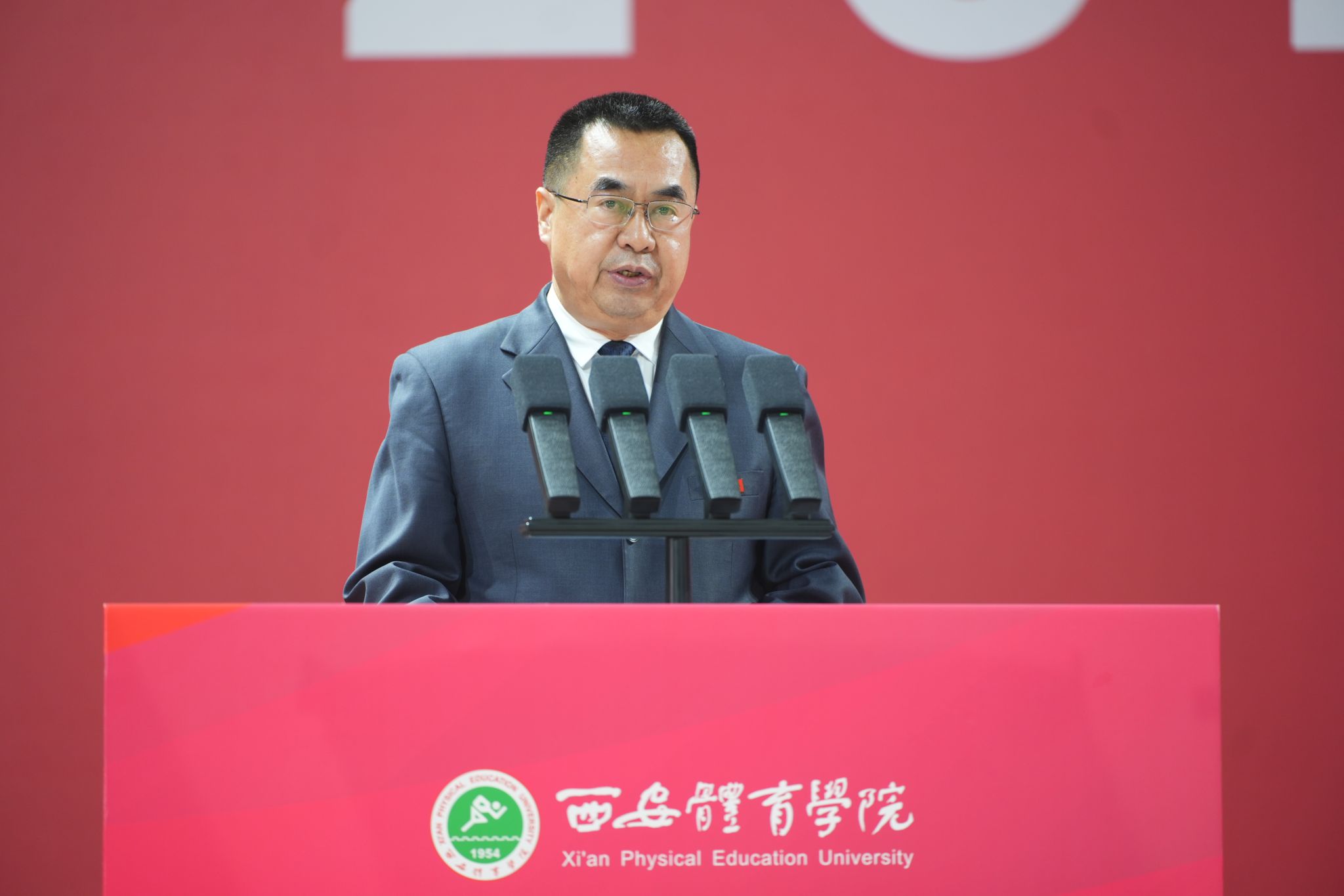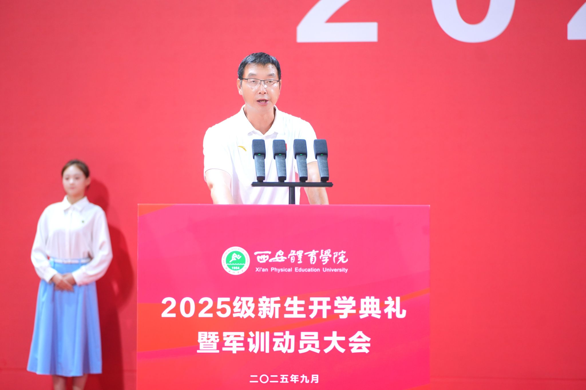 校长李富生以“守正创新超越 自信自立自强”为主题,以“传承、奋进、逐梦”为主线,为全体新生讲了开学第一课。他指出,我校建校71年来,始终与国家体育事业发展同频共振,而今,通过一系列疾风骤雨、破壁开局、重塑筋骨的改革发展举措,学校各项办学核心指标大幅跃升,人才培养质量稳步提升,办学综合实力显著增强,治理体系和治理能力现代化迈出坚实步伐。基建提速,从蓝图到实景,刷新“西体速度”;校区西迁,从一体到两翼,擘画“西体宏图”;赛道转换,从险处到高峰,彰显“西体特色”;赛事添彩,从创新到引爆,树立“西体标杆”;竞训改革,从跟跑到重构,形成“西体范式”;体教融合,从实践到理论,凝筑“西体智慧”,如今的西体,正以昂扬的姿态向着一流体育大学阔步前进。