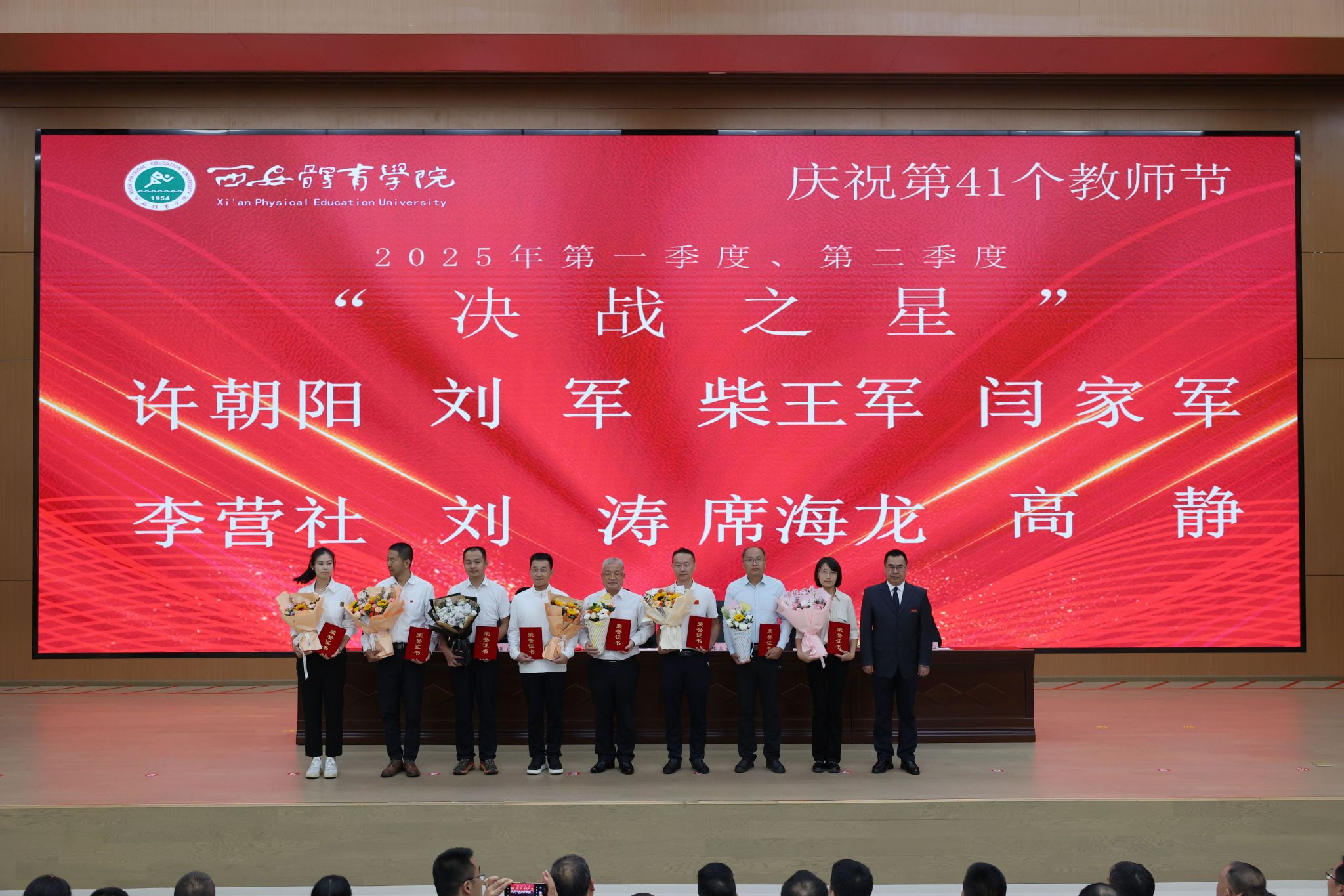 校长李富生指出,教师是学校发展的第一资源,此次表彰既是对广大教师辛勤付出的充分肯定,也是弘扬尊师重教优良传统的具体体现。近两年,学校制定实施“三年行动计划”,创新开展“三大战役”,办学理念日益清晰,硬件条件显著改善,综合改革全面推进,教学科研、竞赛训练、人才培养质量、文化影响力等方面持续突破,已加速迈入全国体育院校第一方阵。广大教师要坚定理想信念,涵养教育情怀,强化责任担当,争做“有情怀、有境界、有水平”的新时代大先生;要持续提升教书育人、科研创新与服务社会的能力,把个人奋斗融入学校发展与国家战略之中,以奋斗姿态接续发力、砥砺前行,为实现西体美好明天贡献智慧和力量。