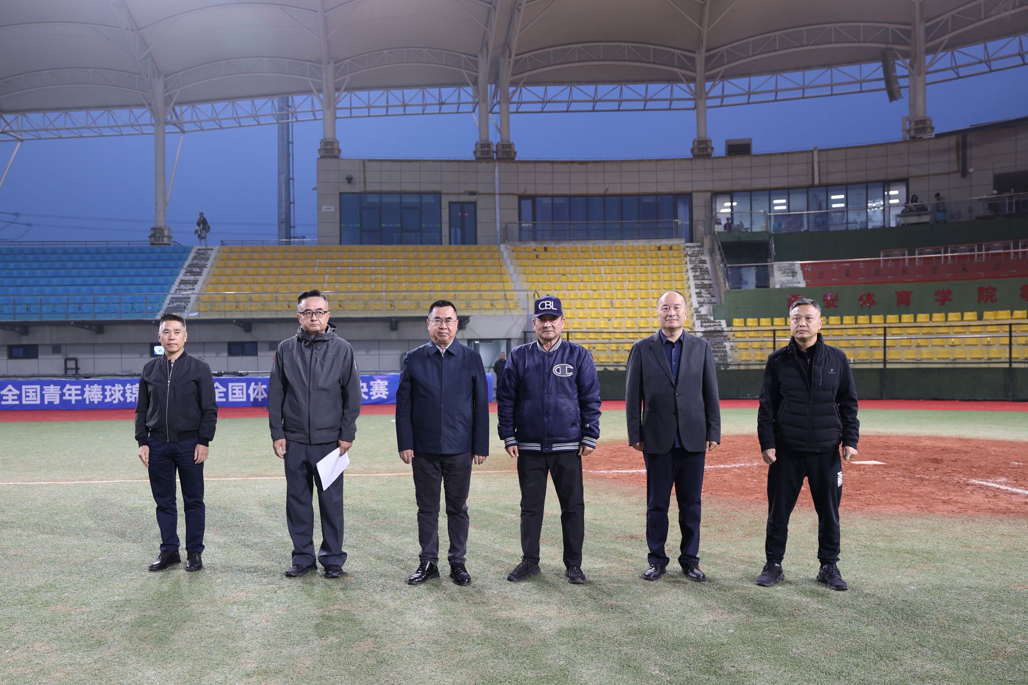 闭幕式现场,中国棒球协会技术委员会主委高琦,中国棒球协会裁判员委员会副主委、本次赛事裁判长冯岐峰,我校校长李富生,鄠邑区文化和旅游体育局局长杨峰以及我校相关部门负责人出席并为获奖队伍颁奖。