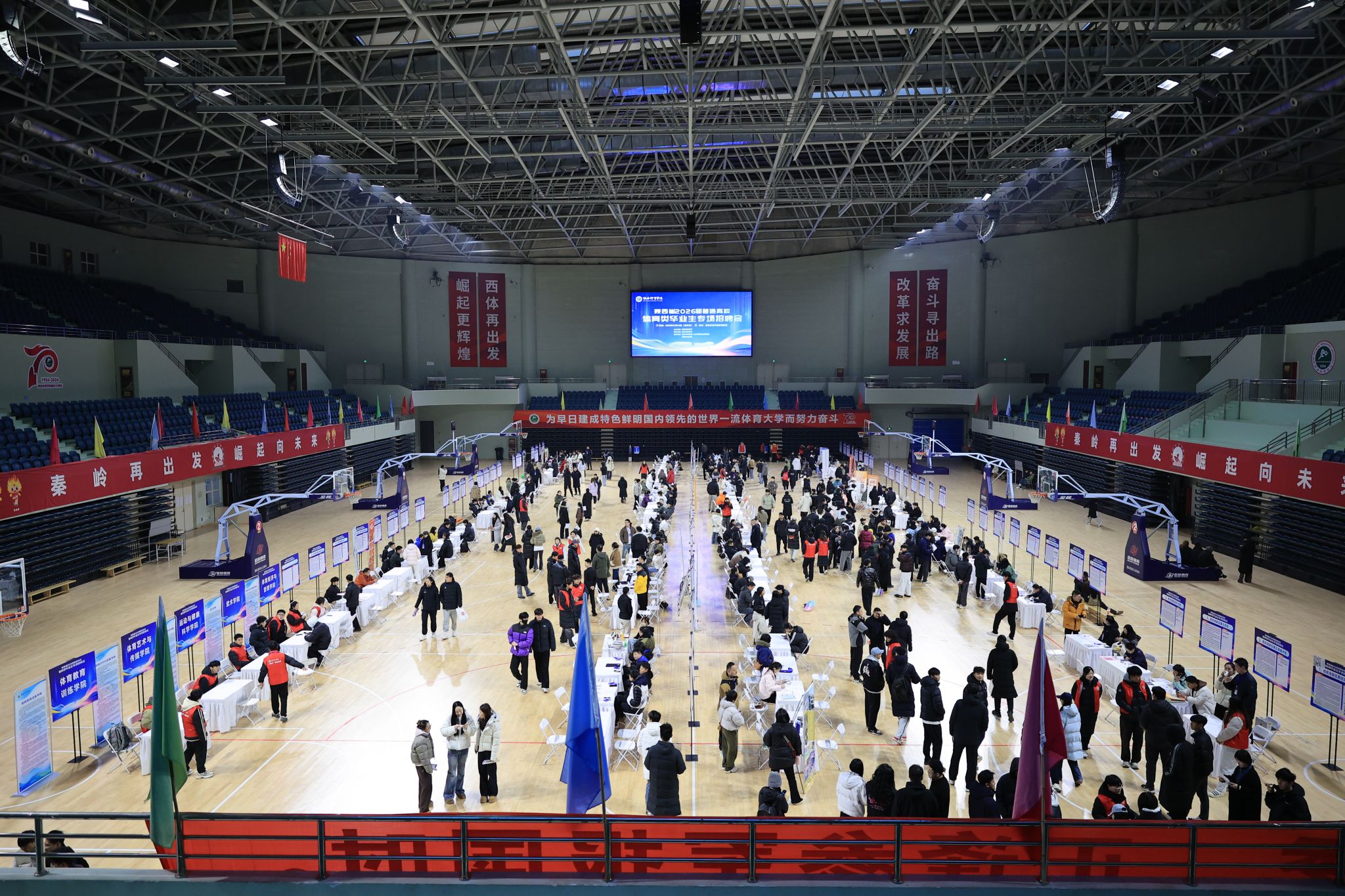 本网讯 12月14日,陕西省2026届普通高校体育类毕业生专场招聘会在我校鄠邑校区举办。本次招聘会由陕西省教育厅主办,我校承办。校党委书记刘子实、党委副书记马海涛到场详细了解参会单位用人需求情况,指导和鼓励毕业生就业。