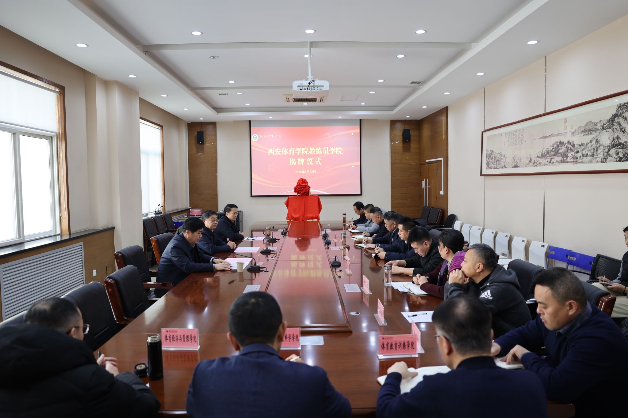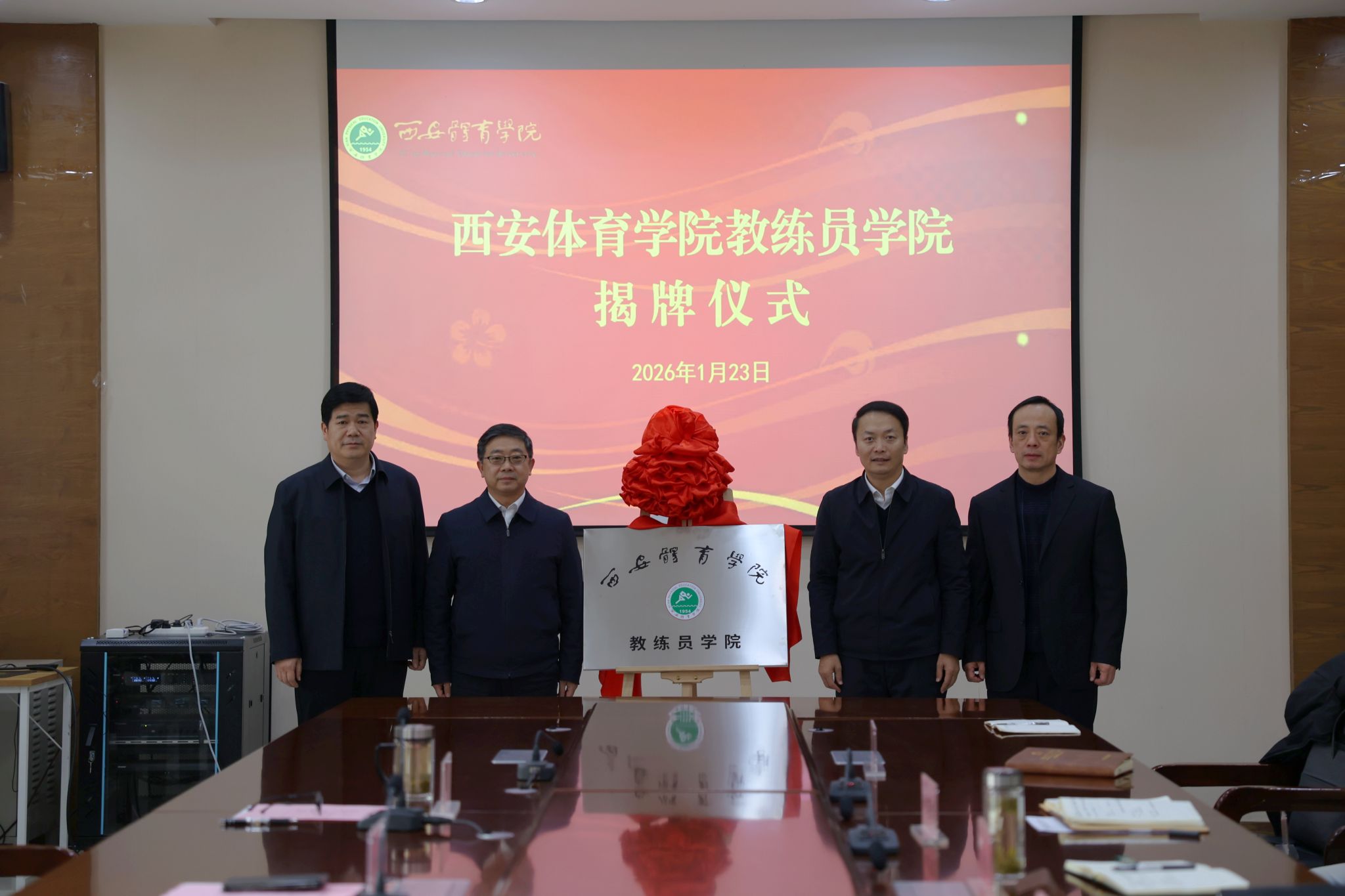 本网讯 为深入贯彻体育强国、人才强国战略及《体育强国建设纲要》要求,优化办学布局,强化特色发展,助力陕西体育强省建设,1月23日,我校在含光校区举行教练员学院揭牌仪式。校党委书记刘子实、党委副书记马海涛、副校长毕德鹏出席,相关职能部门负责人、二级学院院长、继续教育学院全体人员参加仪式,共同见证这一关乎学校特色发展与区域体育人才培养的重要时刻。