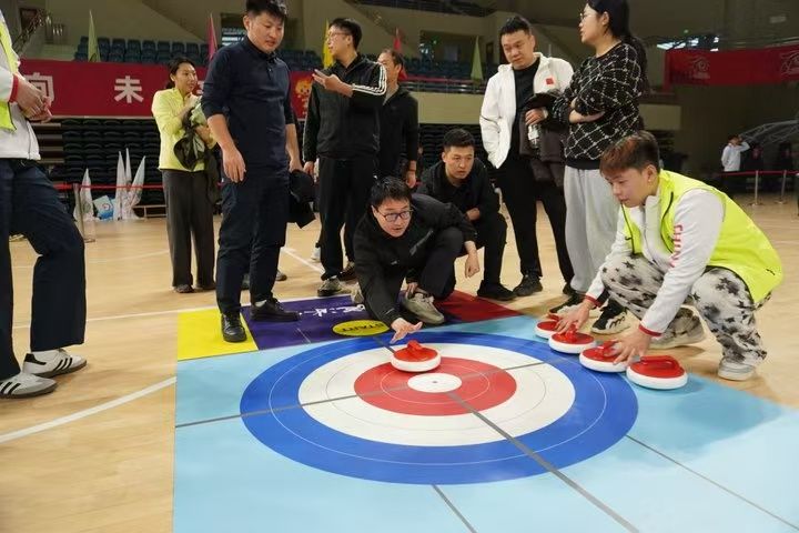 作为本次运动会的亮点项目之一,赛场特别设置了“旱地冰壶”等兼具趣味与策略的项目,吸引了众多教职工的积极参与,完美地将冰雪运动的智慧与魅力带到身边,这正是我校积极响应“带动三亿人参与冰雪运动”号召、普及与发展冰雪项目的一次生动实践。