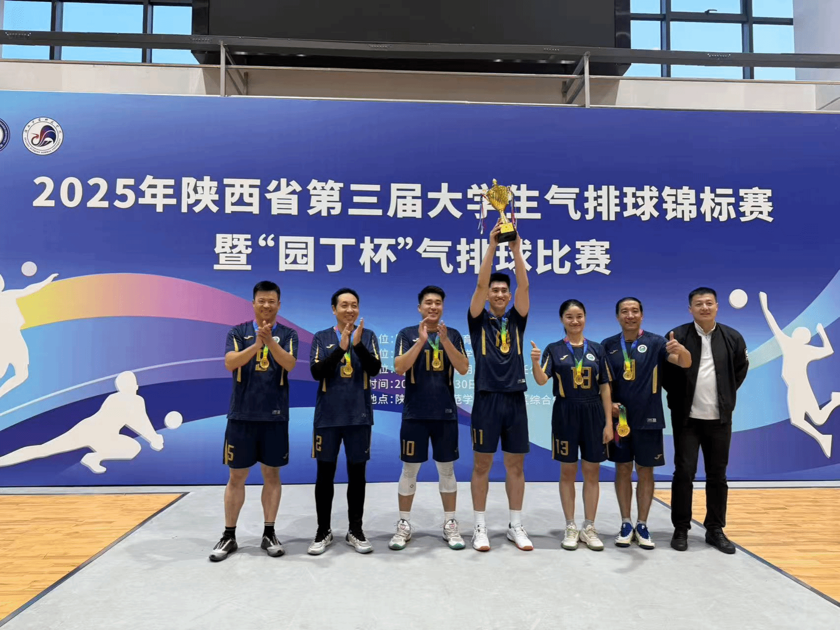 本网讯    近日,由陕西省教科文卫体工会主办的“中国梦·劳动美——凝心铸魂跟党走 团结奋斗新征程”2025年陕西省教科文卫体系统职工羽毛球比赛在西北农林科技大学落下帷幕,来自全省高校、科研院所及文卫体单位的57支代表队参加了比赛,我校教职工羽毛球队历经三天的激烈角逐,最终获二等奖。 2025年陕西省第三届大学生气排球锦标赛暨“园丁杯”气排球比赛在陕西学前师范学院举办,我校教职工气排球代表队凭借出色表现,成功卫冕“园丁杯”冠军。