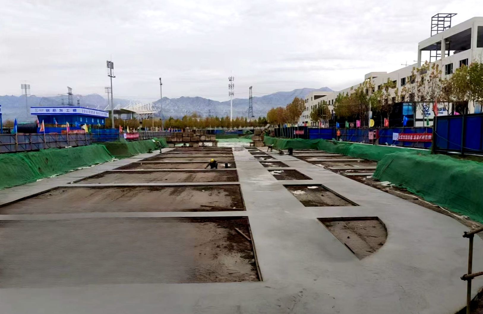 11月17日上午,鄠邑校区田径场看台及附属用房项目北段基础垫浇筑完成。据项目负责人介绍,这一关键节点的顺利推进,标志着项目基础工程取得阶段性突破,为后续主体结构施工奠定了坚实基础。