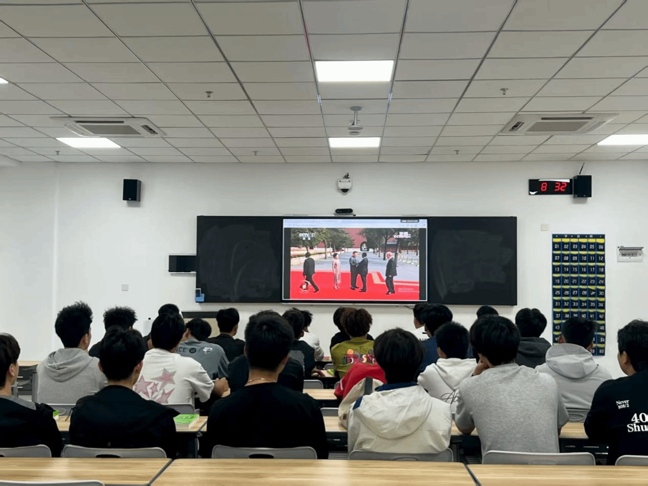 教室里,学生们安静观看,小小的空间里,历史的厚重感与青春的蓬勃力交融,激荡着每一颗年轻的心。