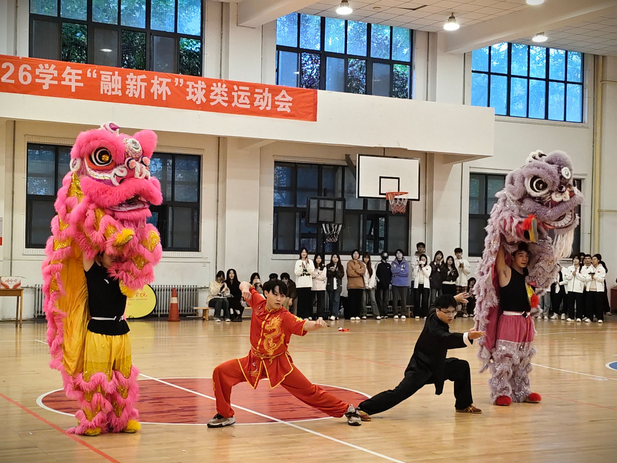 比赛正式开始前,一系列精彩节目轮番上演。武术学院的舞狮表演气势如虹,灵动威武;运动与健康科学学院的舞蹈活力四射,诠释青春的节奏;武术表演则刚柔并济,赢得阵阵喝彩。每一个节目都凝聚着同学们的汗水与热情,也为开幕式增添了无限色彩。