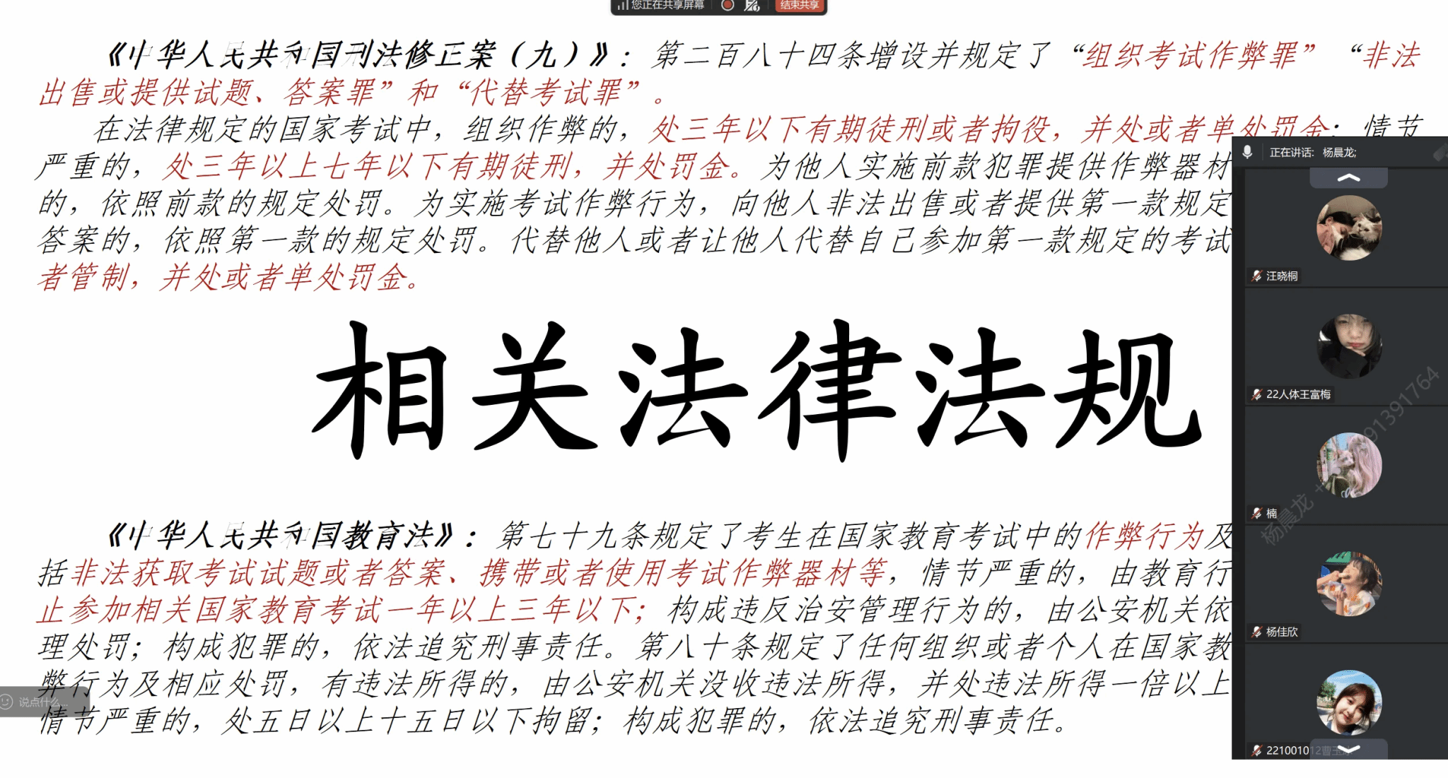 随后,杨老师带领同学们学习了与研究生考试相关的法律法规,明确告知了同学们作弊违纪行为的严重后果,让同学们直观感受到 “诚信不可违,违纪必追责” 的严肃性。还带领大家学习了陕西省考试院提供的近期考生违规携带手机典型案例。