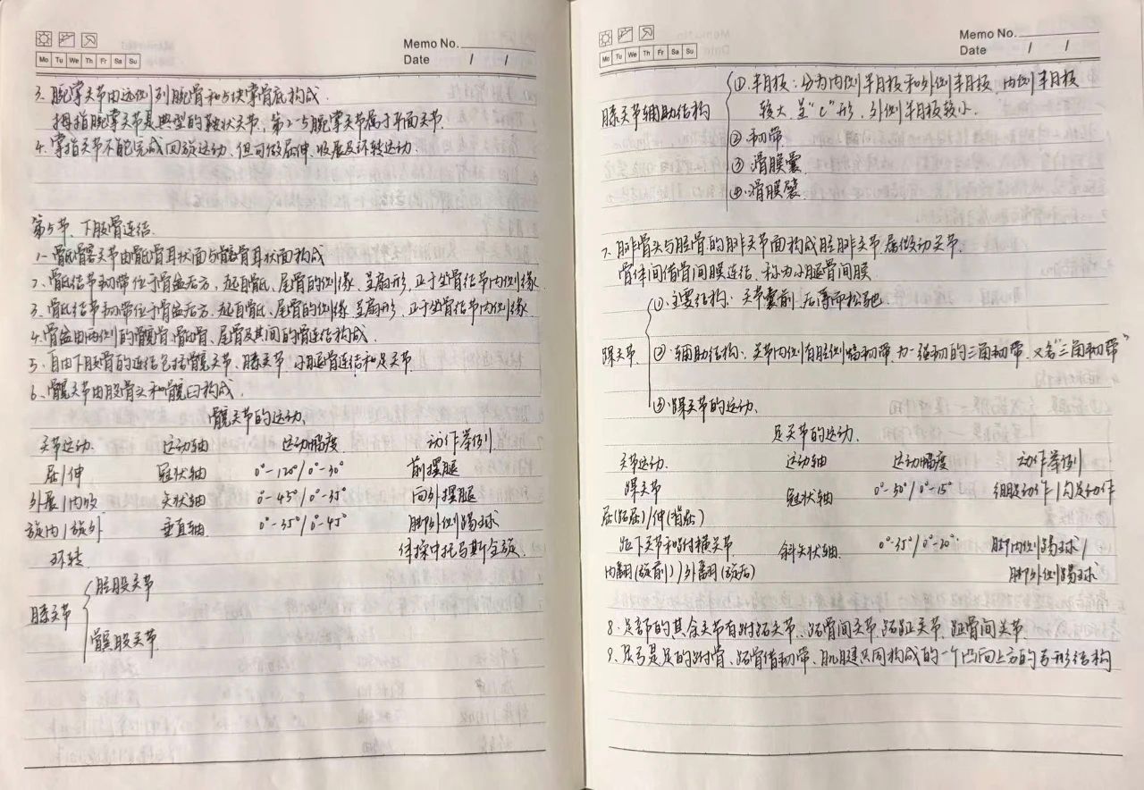 每一份笔记,都凝聚着学子们的心血与智慧。彩色画笔勾勒的肌肉解剖图精准细腻,康复原理标注清晰,文字与图解相得益彰,将复杂的人体结构变得直观易懂,尽显专业严谨;这些笔记不仅是知识的载体,更是学习态度的体现,是成长的珍贵印记。