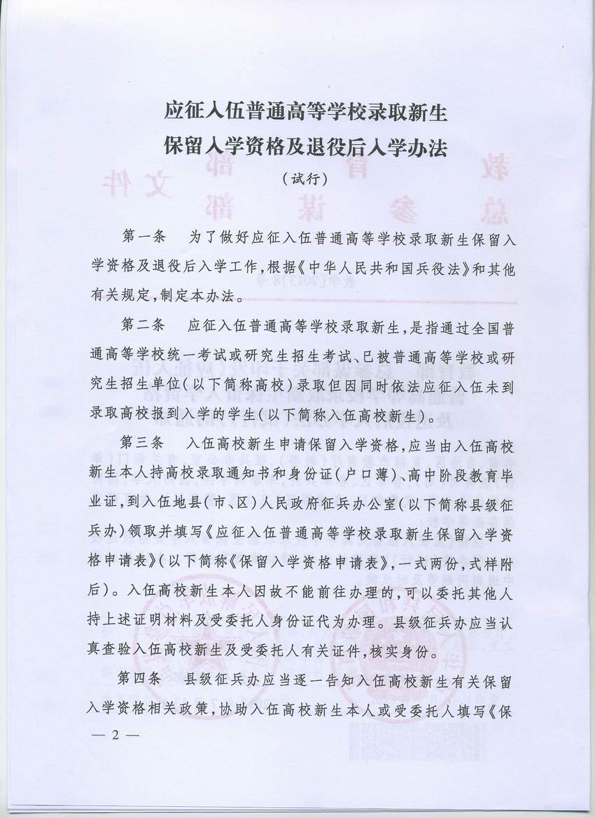 教学[2013]8号_应征入伍普通高等学校录取新生保留入学资格及退役后入学办法(试行) (1)