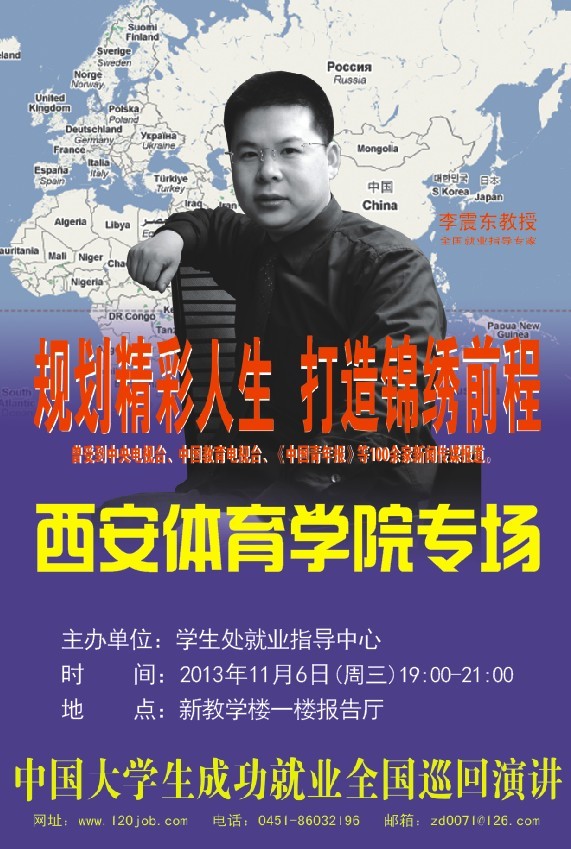 为加强我院学生就业教育,帮助同学们更好的进行职业定位和职业准备,院学生处就业指导中心特邀全国就业指导专家李震东教授,为我院学生举办《规划精彩人生 打造锦绣前程》主题讲座。