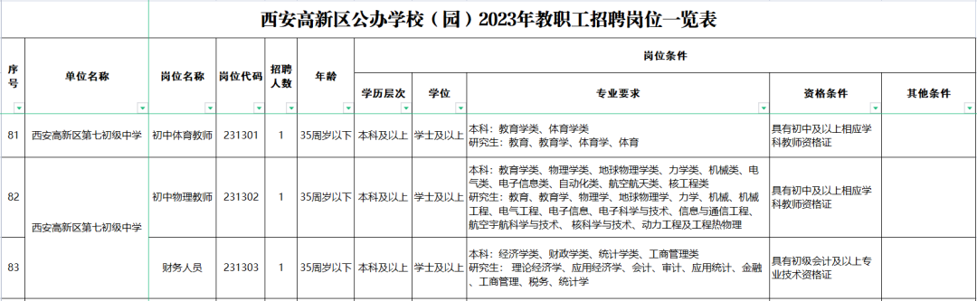 9.招聘岗位具体条件以《西安高新区公办学校(园)2023年教职工招聘岗位一览表》(附件)的要求为准。