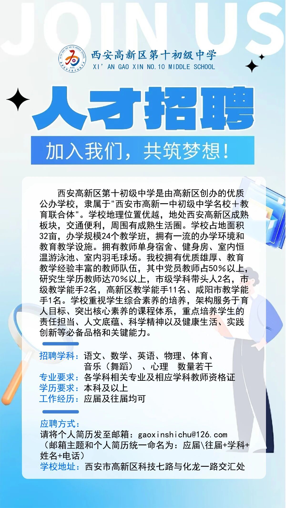 西安高新区第十初级中学人才招聘公告