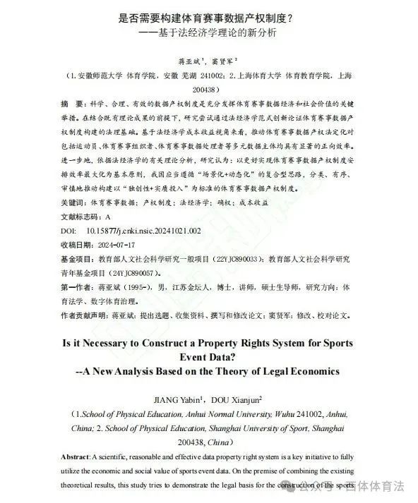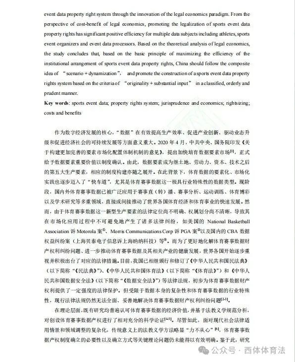 《是否需要构建体育赛事数据产权制度?——基于法经济学理论的新分析》的研究成果。