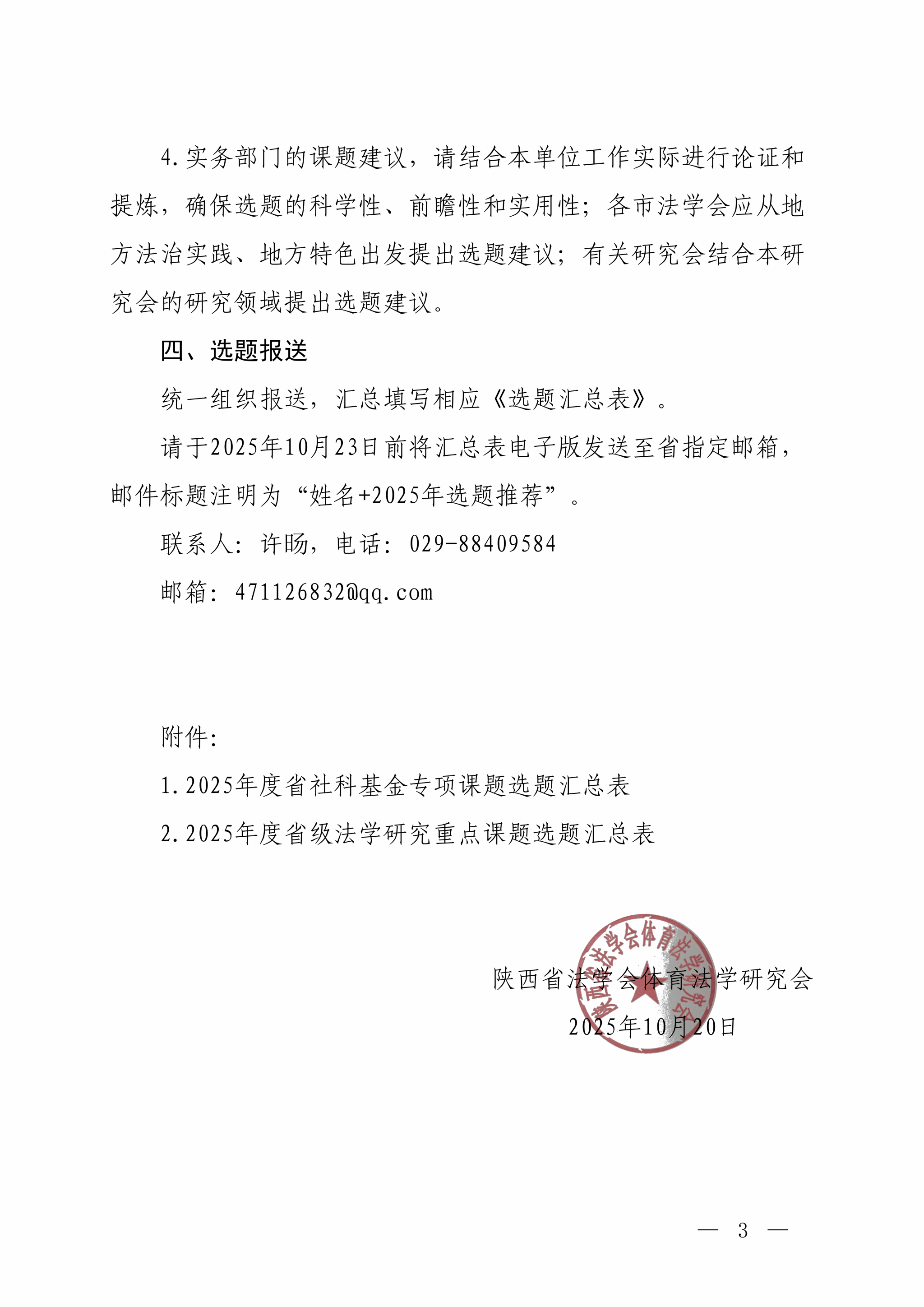 陕西省法学会体育法学研究会关于征集2025年度法学研究课题选题的通知(1).pdf