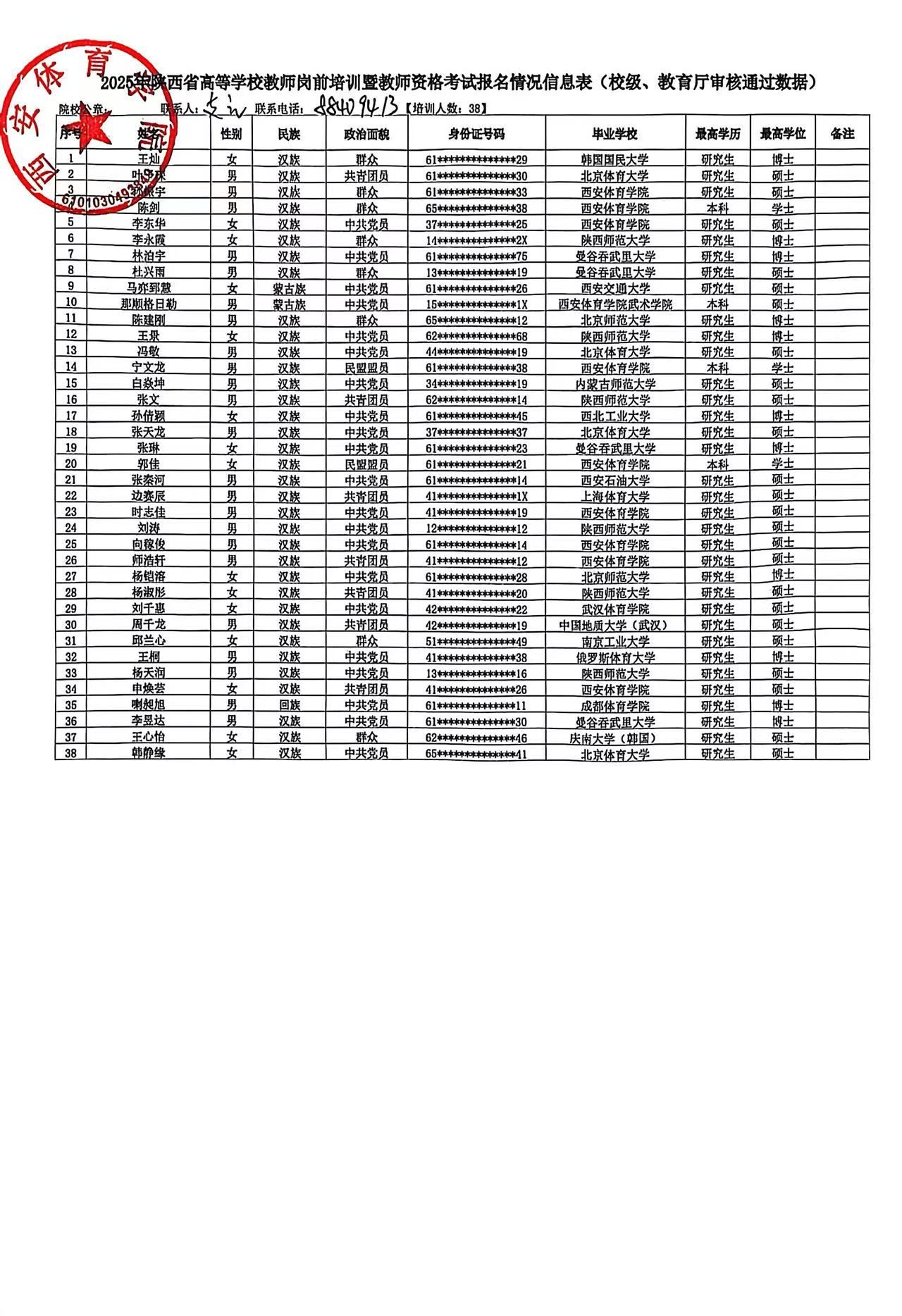 关于2025年陕西省高校教师岗前培训暨教师资格教育基础理论知识培训报名人员的公示