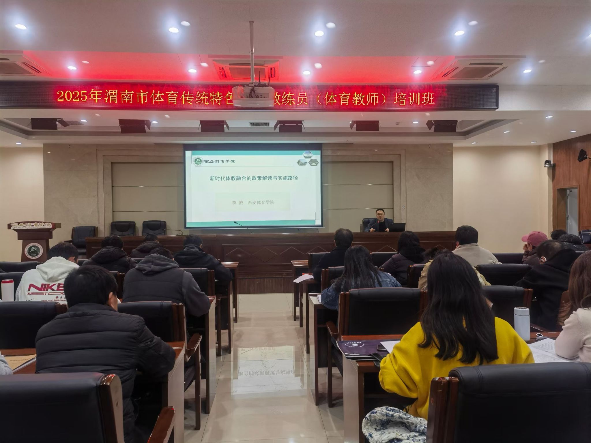 2025年11月10日,渭南市体育传统特色学校教练员(体育教师)培训班开班,西安体育学院马克思主义学院副院长李赟教授以“新时代体教融合的政策解读与实施路径”为题进行开班第一讲。