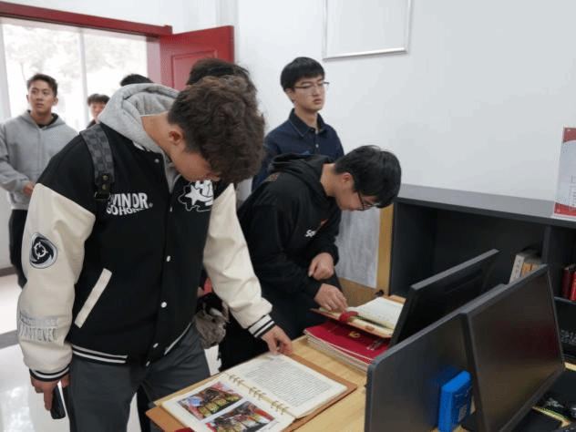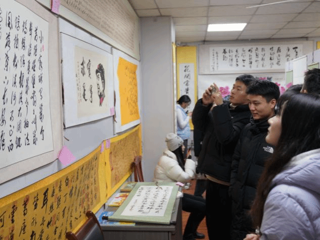 学生参观书画展览室