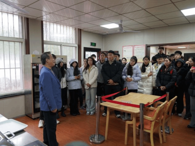 在社区党委书记练鹏飞的引导下,师生们实地参观了社区的服务设施。从整 合多种文体设施的活动中心、图书室,到配备“轮椅餐桌”的适老化智慧食堂、老年康养中心,再到警社联动治安室、和事佬议事室、调解工作室等场所,师生们通过切身观察,对社区精心打造的为民便民利民的服务体系有了更为直观而深刻的认识,感受到基层治理民生温度。