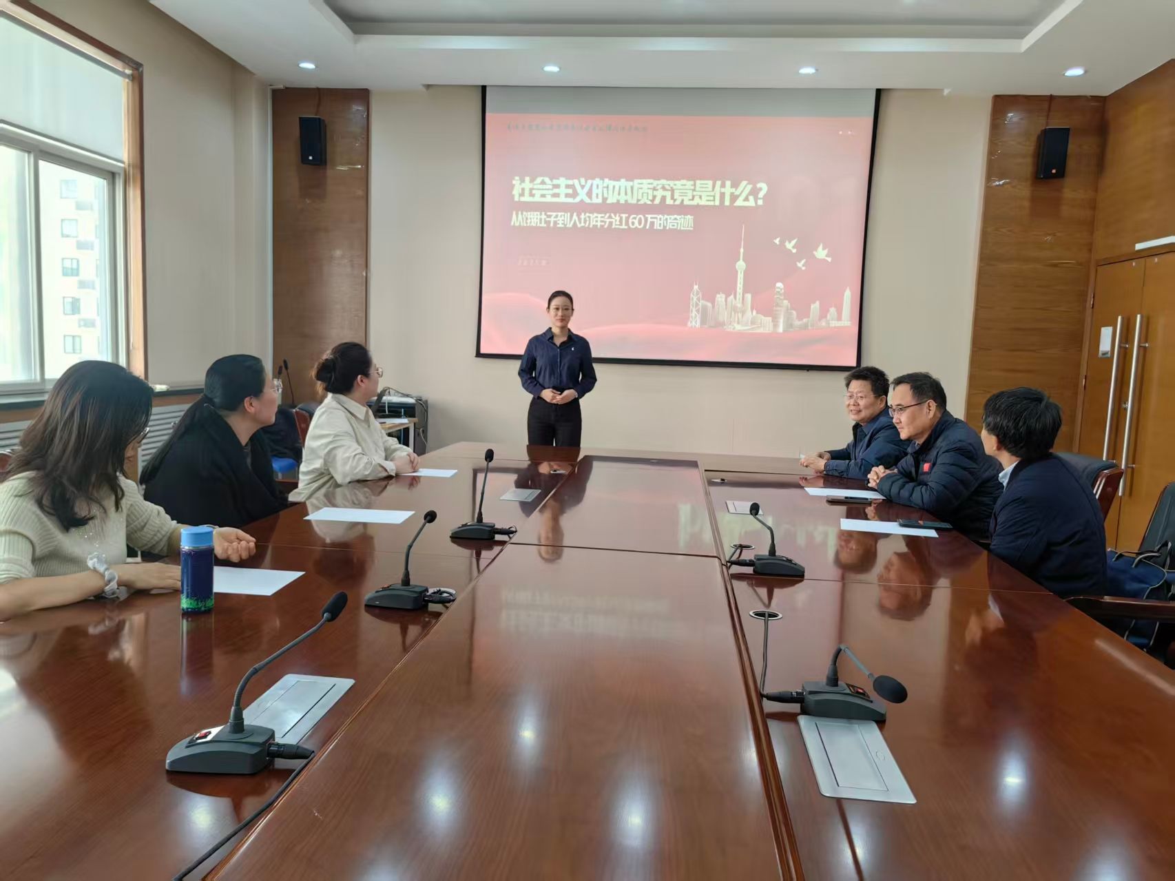 今年入围省级现场展示的青年教师孙赵璇围绕《毛泽东思想和中国特色社会主义理论体系概论》中“社会主义的本质究竟是什么?——从饿肚子到人均年分红60万的奇迹”展开生动讲授。她结合历史发展脉络与现实案例,深入浅出地阐释了中国特色社会主义制度的优越性,充分展现了新时代思政课教师扎实的理论功底和强烈的使命担当。