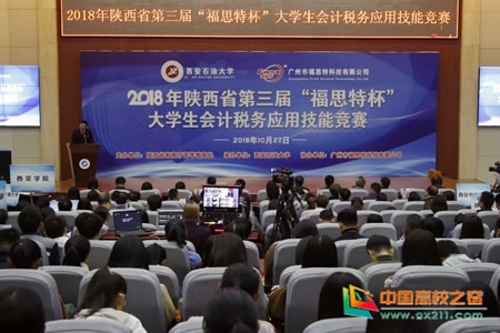 2018年10月27日,由陕西省教育厅高等教育处主办、西安石油大学承办、广州市福思特科技有限公司提供技术支持的2018年陕西省第三届“福思特杯”大学生会计应用技能竞赛暨“贯彻十九大精神,推进财税技能精准改革”研讨会在西安石油大学鄠邑校区举办。