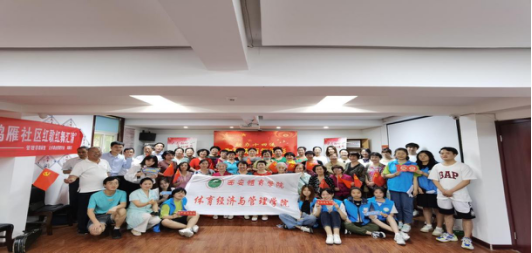 为庆祝中国共产党成立100周年,凝聚起开启全面建设社会主义现代化国家新征程、向第二个百年奋斗目标进军的磅礴力量,唱响永远跟党走、担当新使命、阔步新征程的昂扬旋律,2021年6月4日下午三点,西安体育学院体育经济与管理系管理教研室党支部携手张家村街道鸿雁社区党支部,居委会开展以“助力十四运,为建党百年添彩”为主题的鸿雁社区红歌红舞汇演会。本次活动同时也是促进教研室教师及加强师德师风建设宣传工作,坚持以育人为理想,塑造人的美好心灵为己任的显著体现。