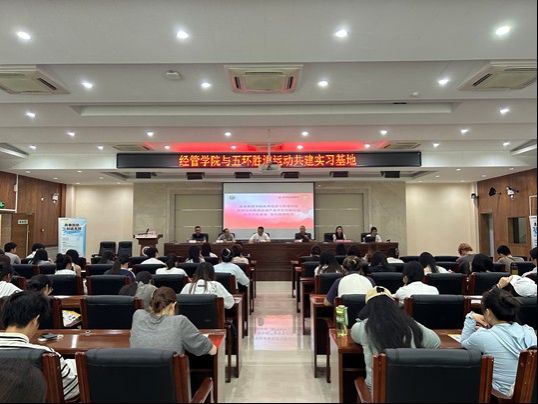 为推动体育经济与管理专业人才培养与行业需求精准对接,进一步提升学生实践能力与就业竞争力,体育经济与管理学院与五环胜道运动产业开发有限公司教学实践基地签约授牌仪式于5月14日15时在西安体育学院含光校区2号行政楼六楼报告厅隆重举行。本次会议由体育经济与管理学院党总支书记陈鑫主持,出席本次会议的有体育经济与管理学院院长王鹏,副院长张恩利,经管学院辅导员霍达、胡雪妍、鲁琼阳;五环胜道产业开发有限公司人力部总经理肖宇峰,主任刘丽,主管靳攀攀,省体店人事经理解莎莎,以及体育经济与管理学院全体学生代表。
