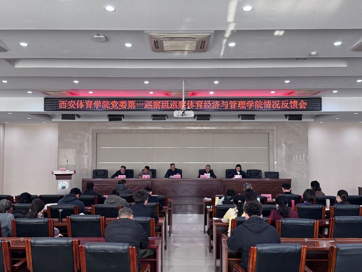 2025 年 12 月 10 日,西安体育学院党委第四轮第一巡察组巡察体育经济与管理学院反馈会在含光校区二号行政楼6楼报告厅召开。校党委委员、副校长雷振华出席会议并讲话。第一巡察组组长张朝阳及全体巡察组成员、体育经济与管理学院党政班子成员、全体教职工、学生代表参加会议。会议由体育经济与管理学院院长王鹏主持。