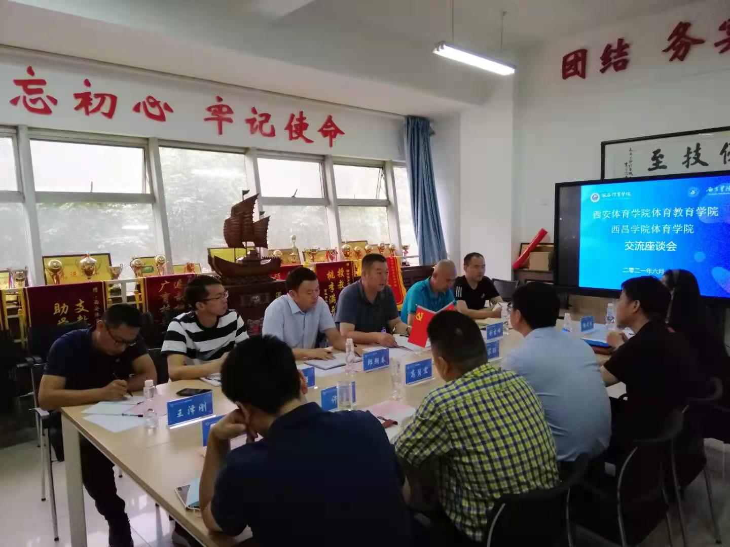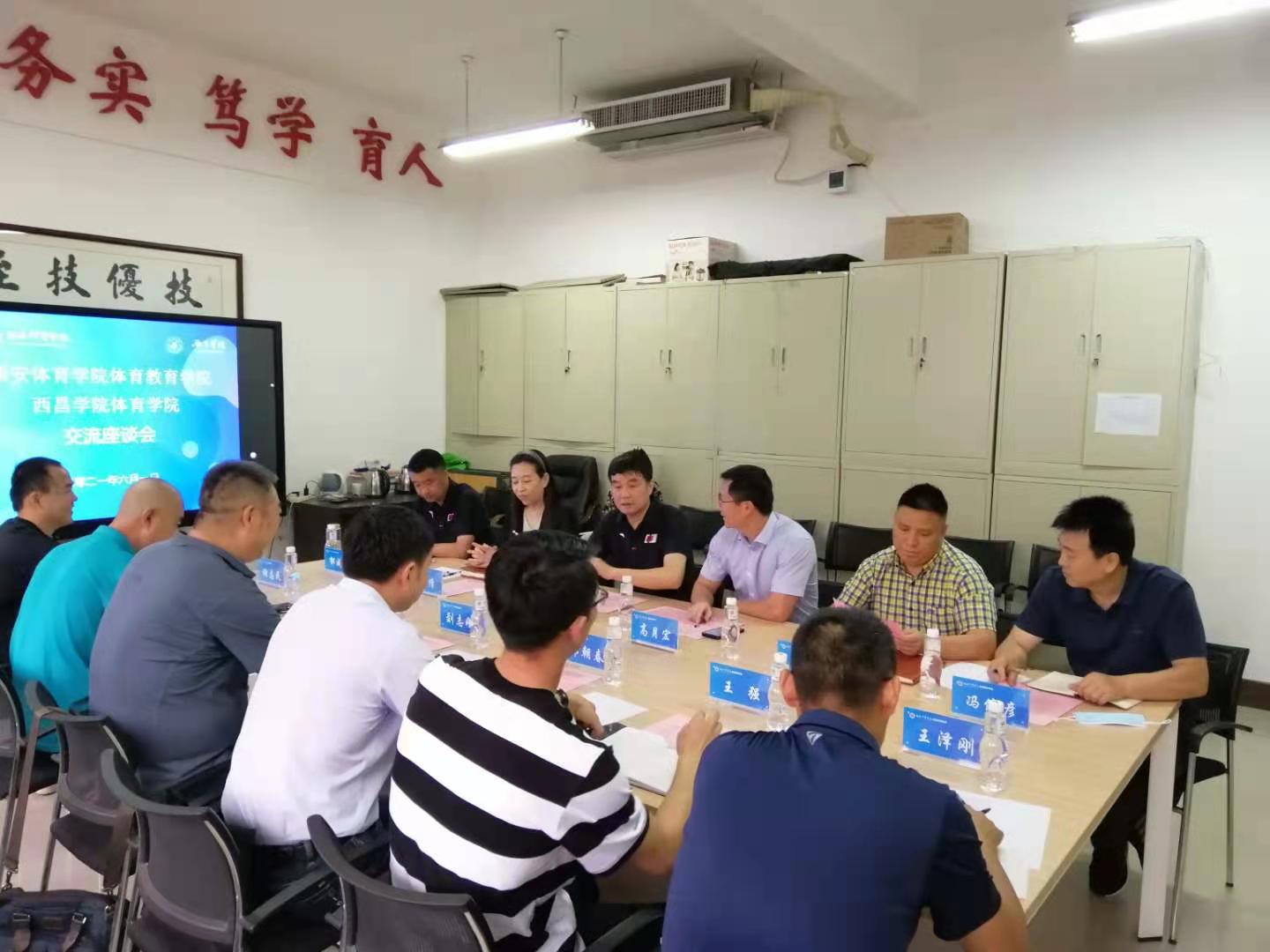 周家颖致欢迎词并介绍我院专业建设、学科建设、课程建设、师资队伍等情况,西昌学院体育学院两位领导就相关情况做了介绍,双方进行了友好的交流,并对各自感兴趣的培养方案制定、教师资格证及学生就业等问题进行了深入的探讨。