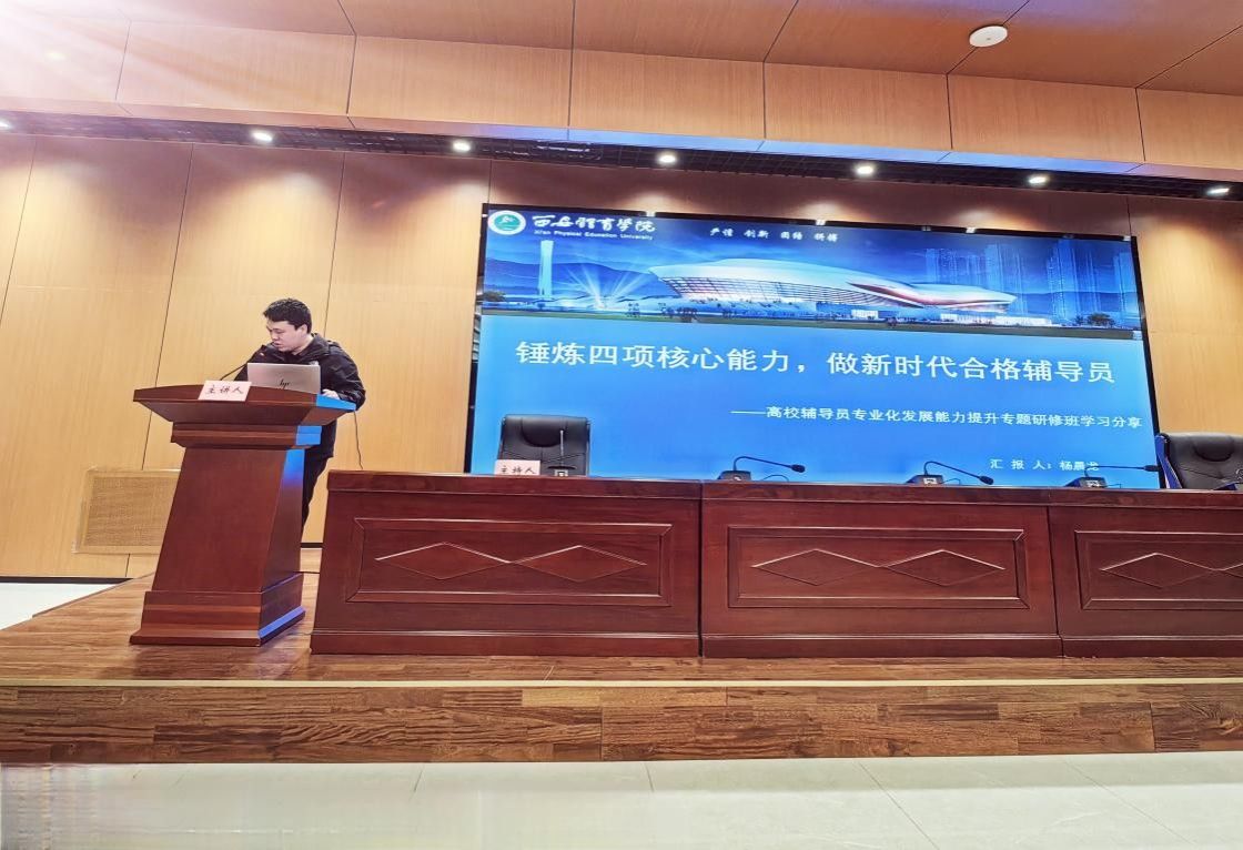 为深入落实《西安体育学院辅导员三级培训体系工作方案》要求,持续锻造政治过硬、业务精湛的辅导员队伍,12月23日,学工部组织开展全体辅导员专题培训会。本次培训创新采用"外出学习成果回流"模式,邀请11月外出参训的13名辅导员代表分享交流,实现优质培训资源的内部转化与共享,为辅导员专业成长注入强劲动力。