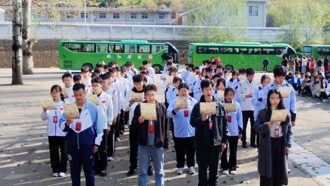 抵达延安后,开班仪式上学子们身姿端正、整齐落座,目光聚焦于台前,满含对此次红色研学的期待。姚泽宇同学作为学生代表进行发言,表达出西体学子对探寻延安精神的热切向往,也传递出传承红色基因、砥砺青春品格的决心,简洁而真挚的话语,让现场氛围更添一份庄重与昂扬。