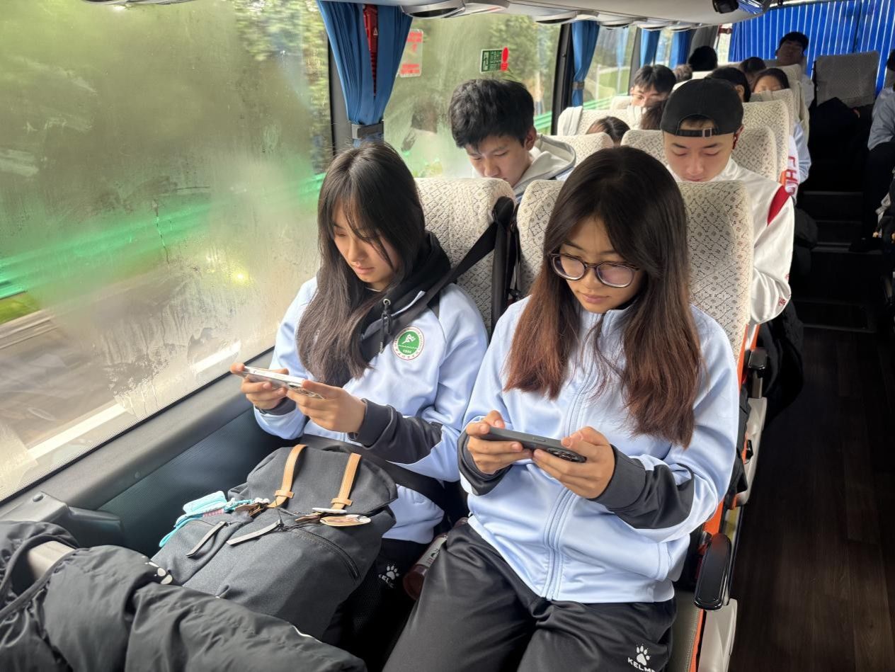 (大巴车上的先导课程“爱国青年奔赴延安”)
