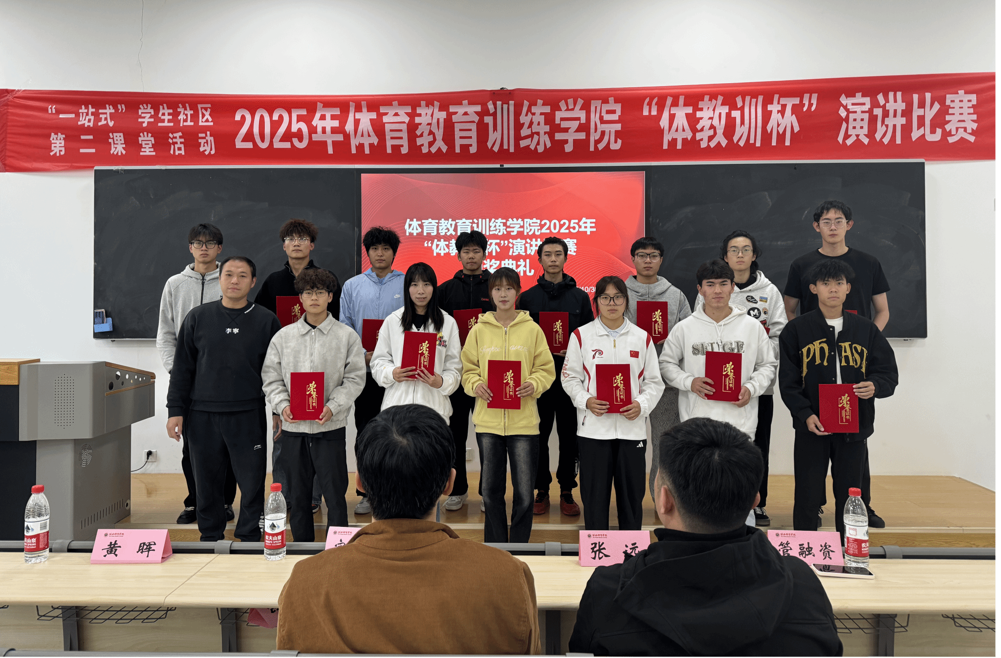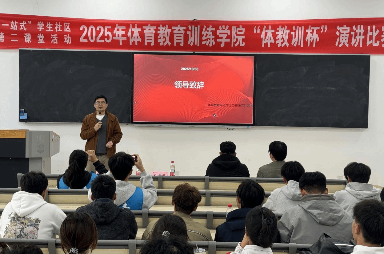 2025年10月29日至30日,体育教育训练学院体育教育专业2025级在鄠邑校区教学楼一楼成功举办2025年西安体育学院体育教育训练学院“体教训杯”演讲比赛。本次活动在年级负责人张远、辅导员张佳怡的组织下,以“爱国荣校,薪火相承”为核心主题,吸引全院本科生400余人积极参与,经前期严格选拔,61名优秀选手脱颖而出,站上决赛舞台展开巅峰对决。