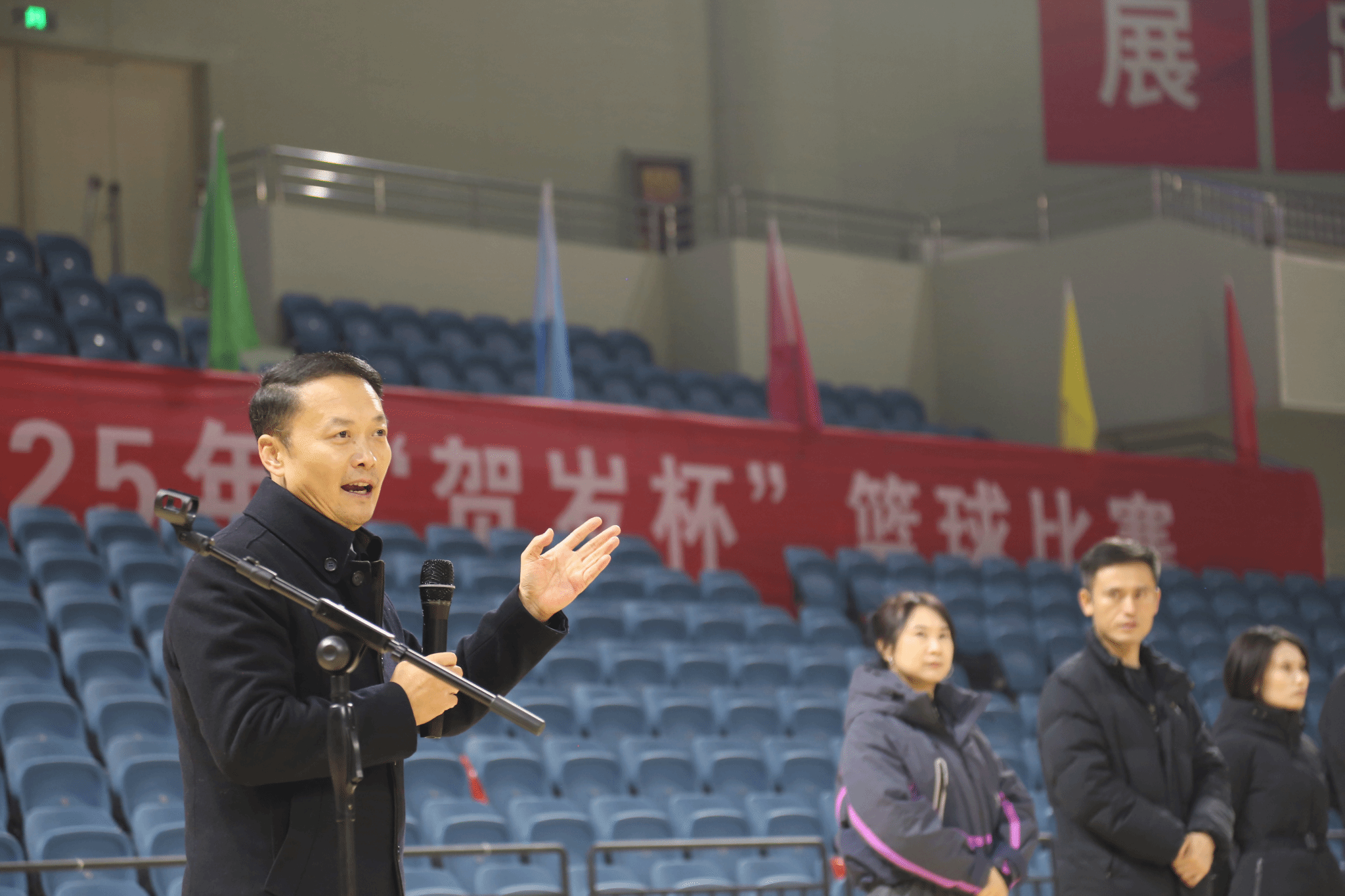 马海涛在闭幕致辞中,首先对本次“贺岁杯”篮球赛事的圆满落幕致以热烈祝贺,向奋勇拼搏的全体参赛队员、公正执裁的裁判员及辛勤付出的工作人员表达衷心感谢。指出,本次“贺岁杯”是学院为迎接2026年元旦精心打造的贺岁活动,取得三大收获: