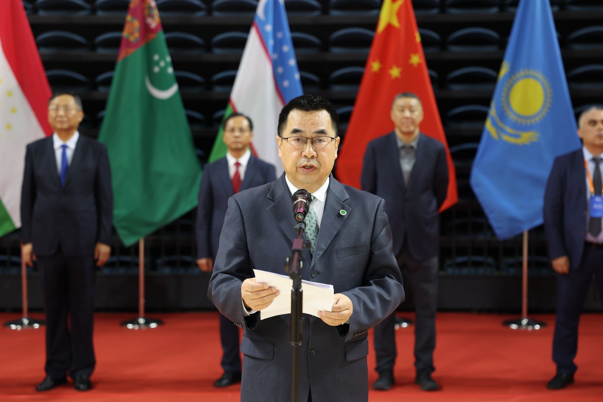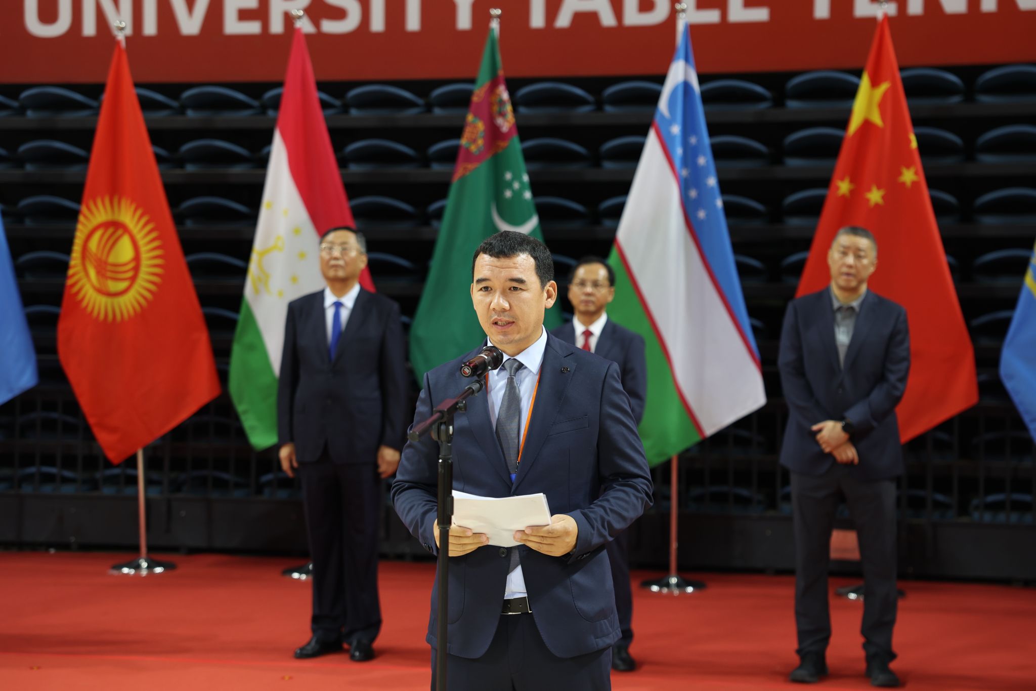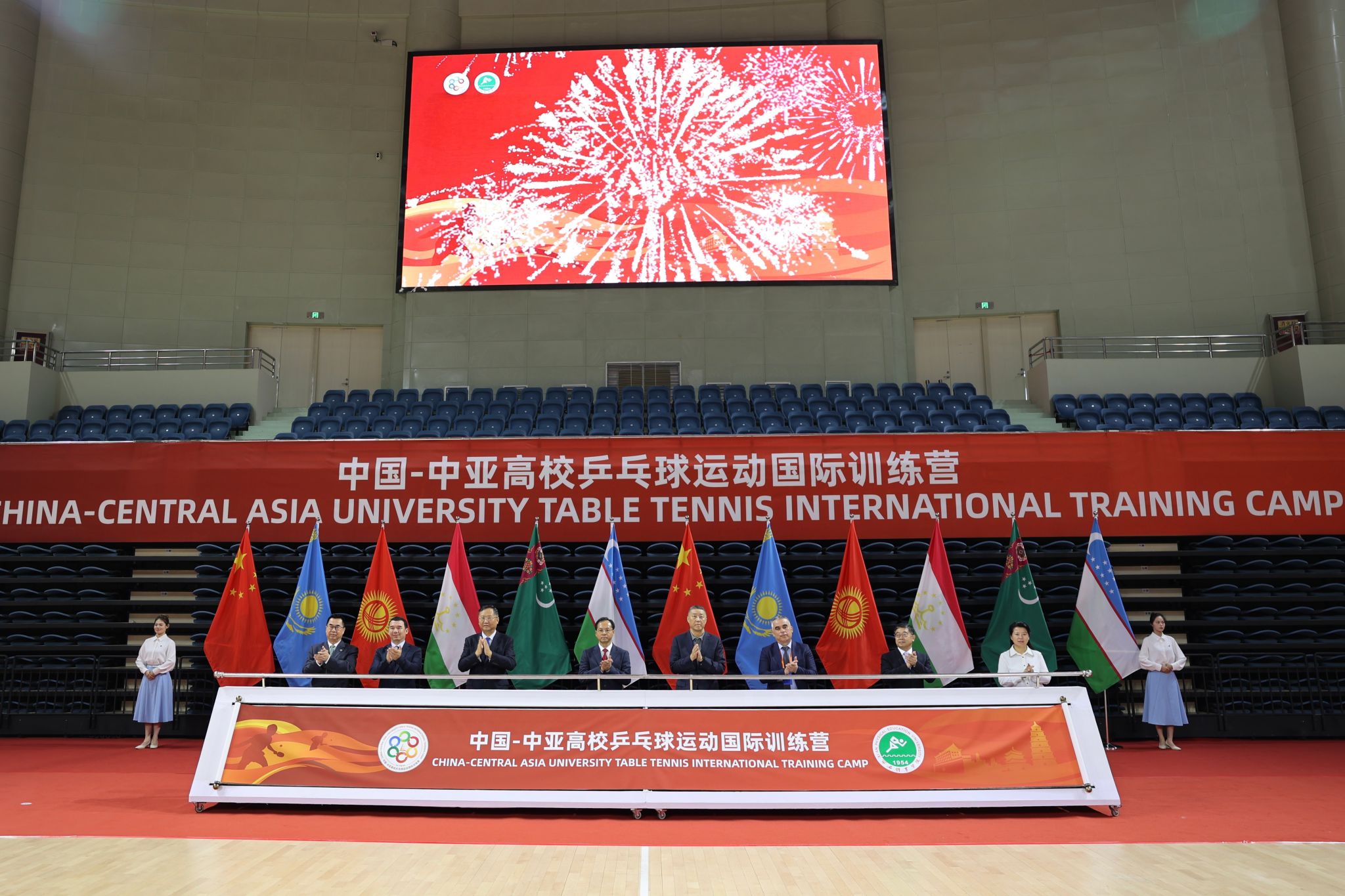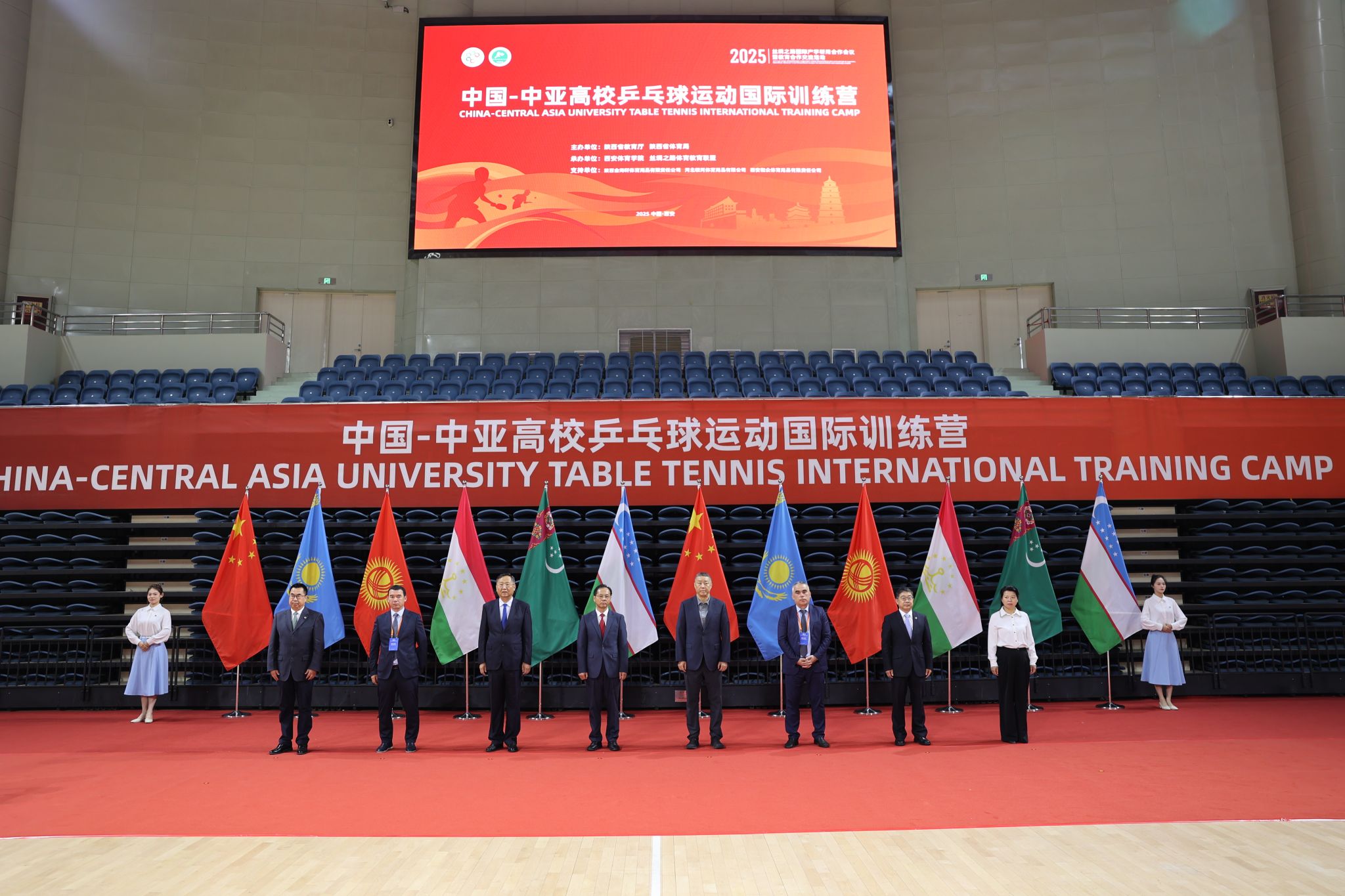 本网讯     为贯彻“一带一路”倡议,促进中国与中亚国家体育文化交流,由陕西省教育厅、陕西省体育局主办,西安体育学院承办的“中国-中亚高校乒乓球运动国际训练营”于5月24日上午在我校鄠邑校区开营。乌兹别克斯坦国立体育大学校长马特卡里莫夫·拉希德·马沙里波维奇,乌兹别克斯坦体育部专业体育教育机构事务管理司司长阿尔济库洛夫·穆库姆·乌拉洛维奇,中国-中亚机制秘书处吴颖钦参赞,陕西省体育局副局长邹军,陕西省教育厅二级巡视员高巍,鄠邑区副区长吴宁超,西安体育学院党委书记刘子实,党委副书记、校长李富生,副校长谢英出席开营仪式。来自乌兹别克斯坦、吉尔吉斯斯坦等中亚高校以及西安体育学院、西北大学、西安石油大学的32名学生运动员齐聚古丝绸之路起点西安,以球会友、共话体育文化交流。