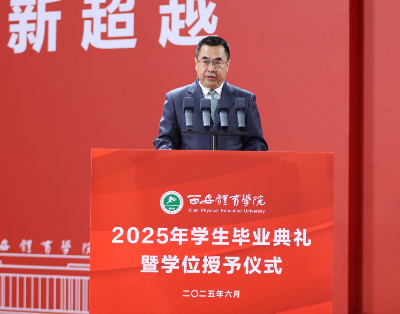 李富生以“砺剑鄠邑酬壮志 扬帆星海启新程”为题作深情毕业寄语,他回顾了学子们与学校共同成长的宝贵历程。他表示,同学们作为鄠邑主校区的首届毕业生,见证了学校的蝶变:现代化教学设施拔地而起,办学硬件条件率先进入全国体育院校第一方阵;“小班教学”“西体小全运”“省队校办”等创新举措成效显著,体育支教、足球改革、高水平赛事承办等成果丰硕。李富生指出,西体学子既是学校改革发展的见证者,更是新校区建设、建校70周年系列活动、重大赛事承办等重要事件的参与者,展现了责任与担当。未来学校将打造高水平人才培养高地、高水平运动队、高水平训练基地、高水平赛事中心、高水平产业基地贡献西体力量。离别之际,他向2025届毕业生送上殷殷嘱托:一是以自信自立之姿,做时代浪潮的掌舵者;二是以守正创新之道,做文明星火的传承者;三是以担当奉献之志,做基层沃土的深耕者;四是以终身学习之态,做人生旅程的领跑者。他勉励毕业生将个人理想融入民族复兴伟业,在各自领域成就非凡,并深情祝愿他们前程似锦,鹏程万里。